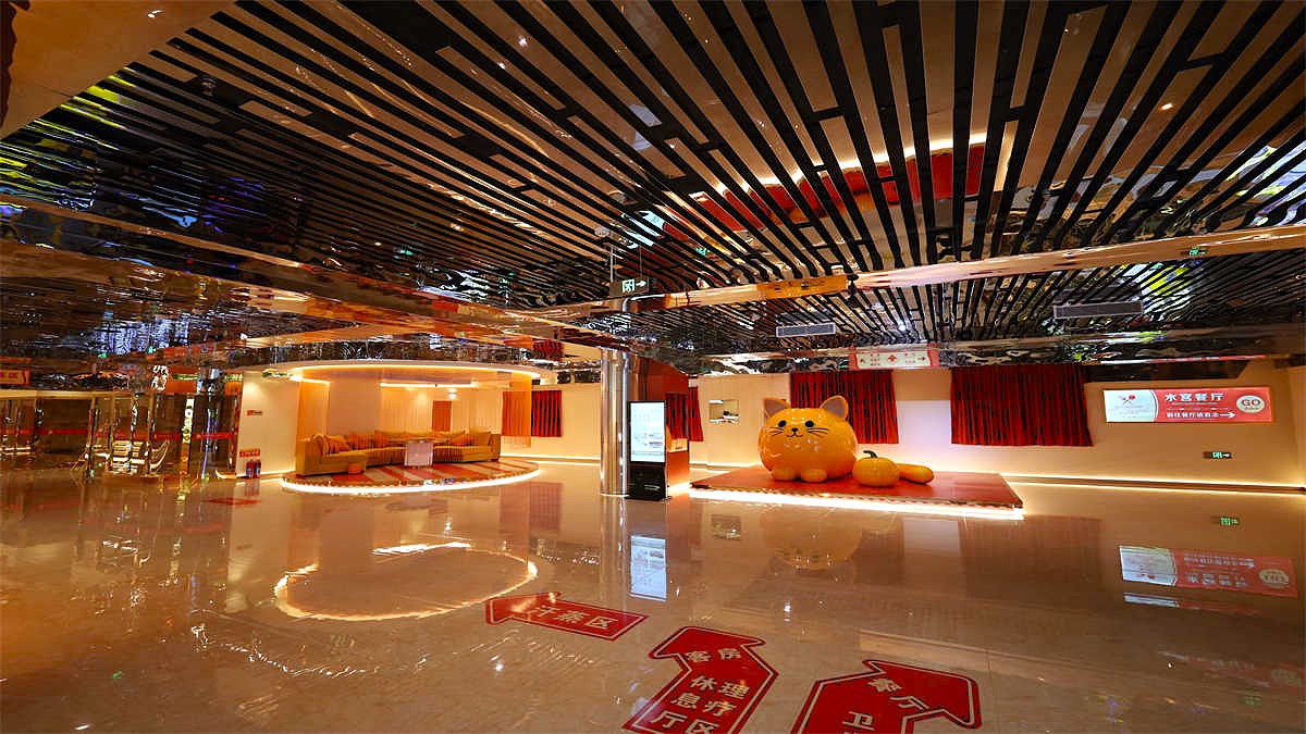 汗蒸休閑區(qū):約1300平方米,設(shè)休息大廳、汗蒸房、水吧、網(wǎng)紅墻、格子屋、電玩區(qū)、吸煙室等,可同時容納120人??头浚?5間,包括大床房、家庭房,標(biāo)準(zhǔn)間面積約50平方米。